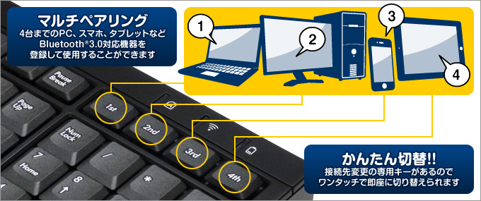 ■ Point3 4台のPC・デバイスとマルチペアリング可能。接続先の切替も簡単!!