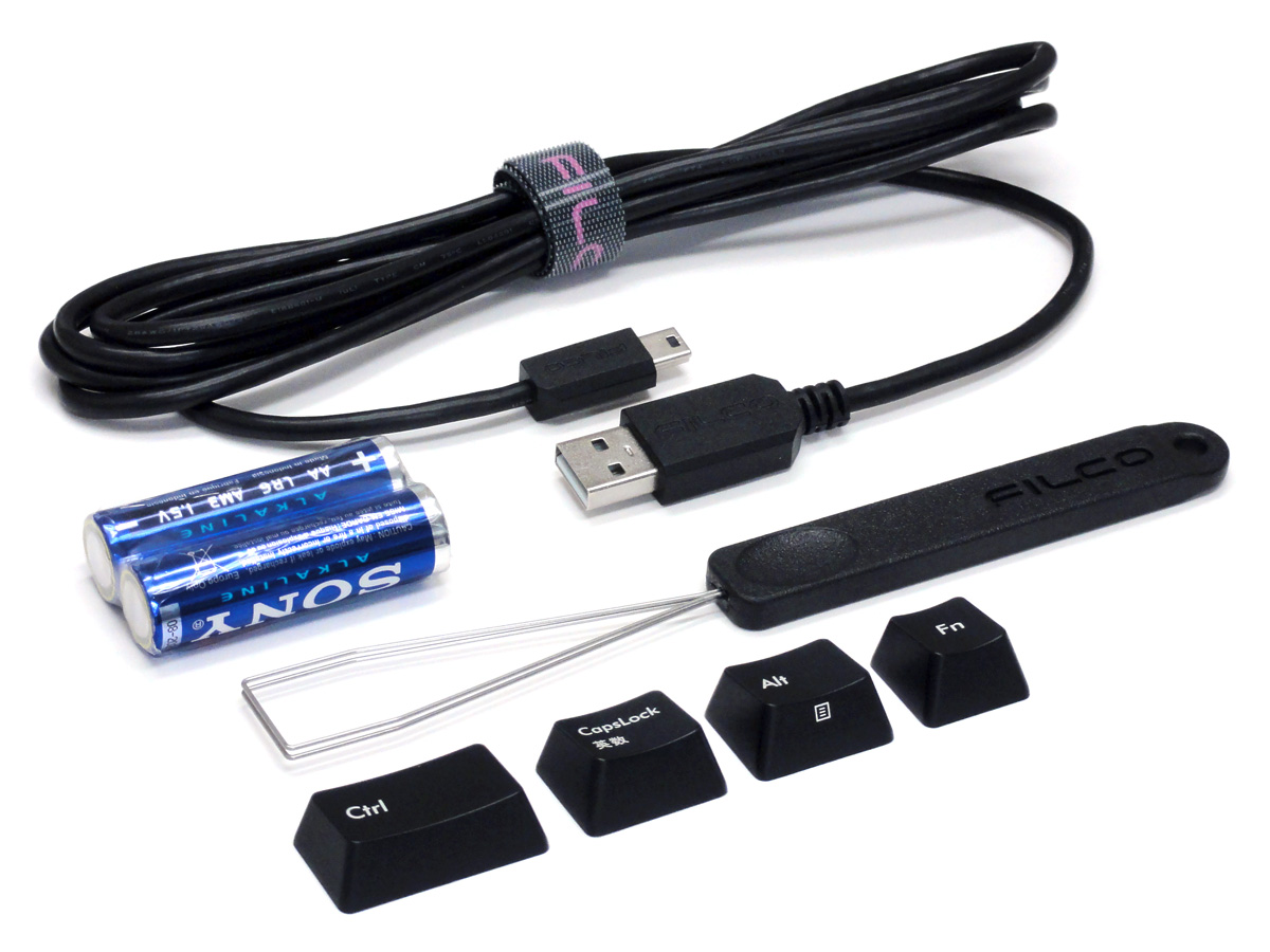 | 付属品 | USBケーブル(1.8m)、試供用単三乾電池 2本、交換用キーキャップ、キー引抜工具 FILCO KeyPuller、取扱説明書 兼 保証書 |