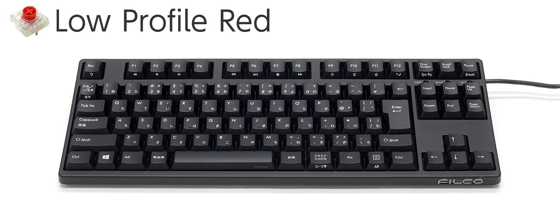 | キースイッチ | ![]() CHERRY MX Low Profile 赤軸(Low Profile linear)/スピード軸(Low Profile SPEED linear) |